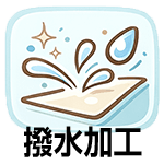 水、油を弾く薬剤(撥水撥油基)により、汚れをはじき、汚れをつきにくくする。