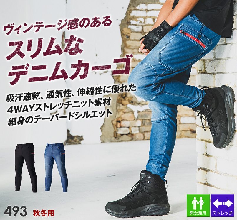 [廃盤・在庫限り・返品交換不可]バートル 493 [秋冬用]4WAYストレッチニット ジョガーカーゴパンツ[男女兼用]