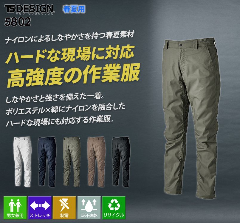 TS DESIGN 5802 [春夏用]TCNライトクロスパンツ[男女兼用]