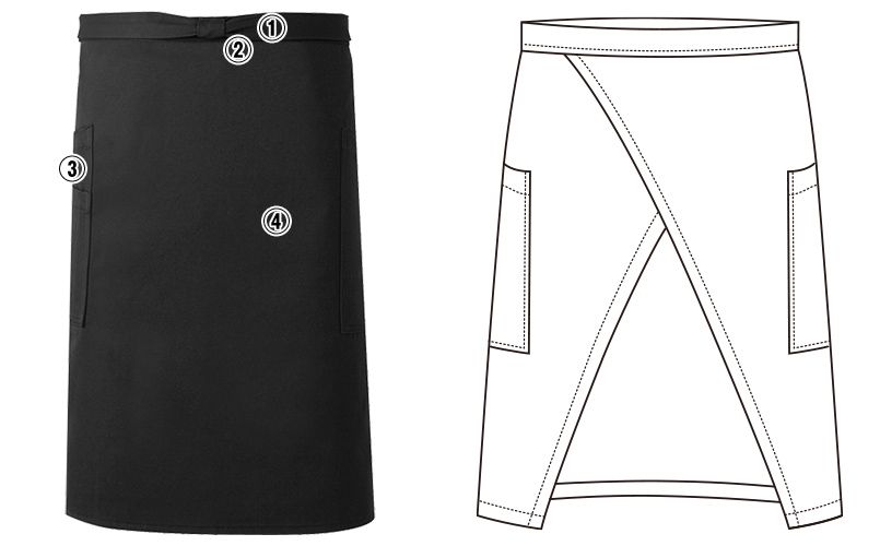 | 仕様 | ずれにくい腰ひも、破れにくい縫製、右2段ポケット、撥水・制電素材 |
