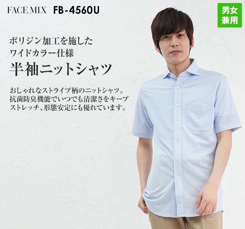 Facemix FB4560U ワイドカラーニット半袖シャツ[ポリジン加工]