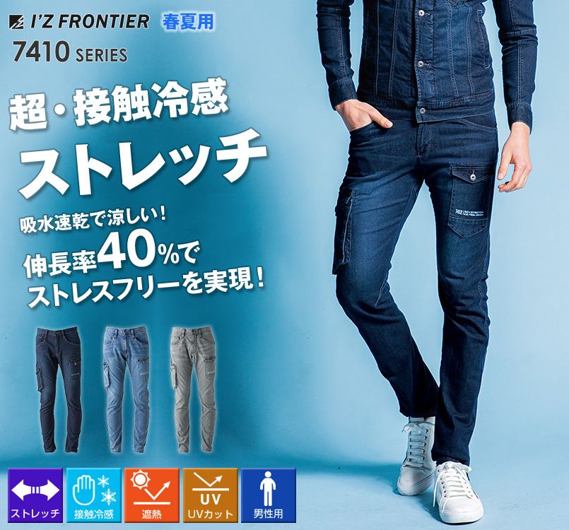 アイズフロンティア 7412 [春夏用]アイスフィールデニムカーゴパンツ[男性用]
