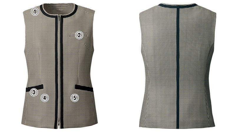 ![ユキトリイ YT2930 [通年]ベスト[ストレッチ/千鳥柄/エコ] アクセサリー用ホール(左右)