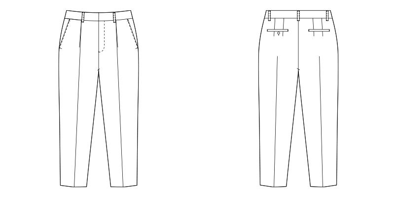 | 仕様 | トリックウエスト、ジャストウエスト、帯電防止ストレッチ裏地、前裏付きひざ下丈、ベルトループ、ファスナー前あき、ポケット左右、ポケット後左右、ホームウォッシャブル |