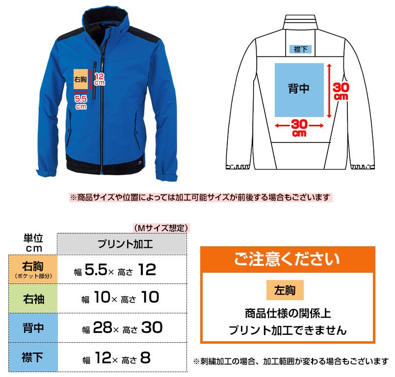 軽防寒ブルゾンのサイズ表