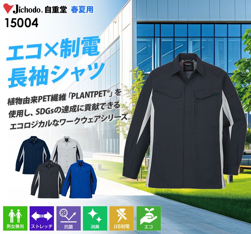 自重堂 15004 [春夏用]エコ製品制電ストレッチ長袖シャツ[男女兼用]