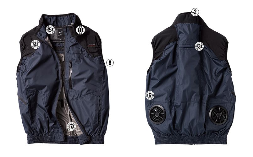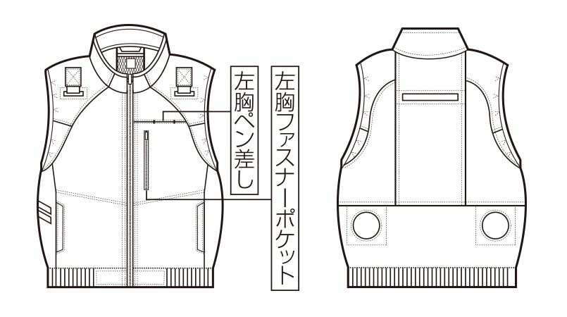 | 仕様 | 電動ファン付ウェア/ハーネス対応/撥水/遮熱/草刈り用ベルト取り出し口/ ペン差しポケット付/左胸ファスナーポケット |