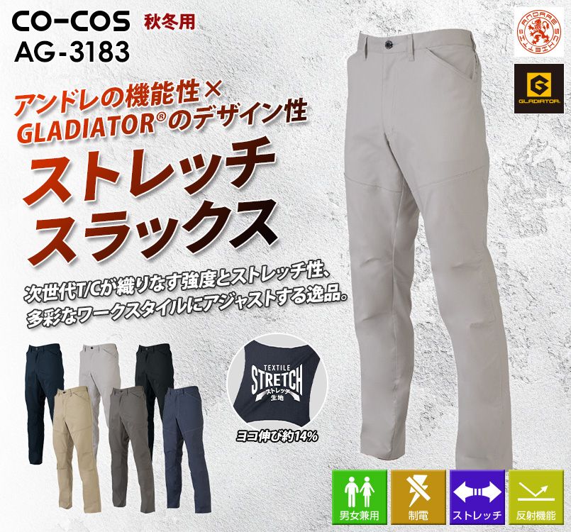 コーコス AG-3183 [通年]アンドレスケッティ×グラディエーター ストレッチ スラックス[男女兼用]
