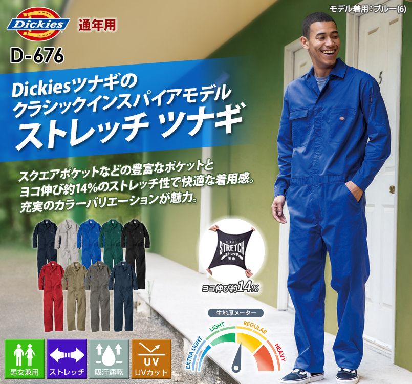 コーコス D-676 [通年]Dickies T/Cストレッチ つなぎ[男女兼用]