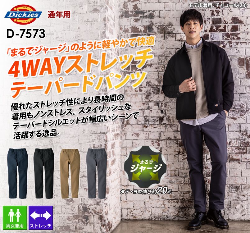 コーコス D-7573 [通年]Dickies 4WAYストレッチ テーパード パンツ[男女兼用]