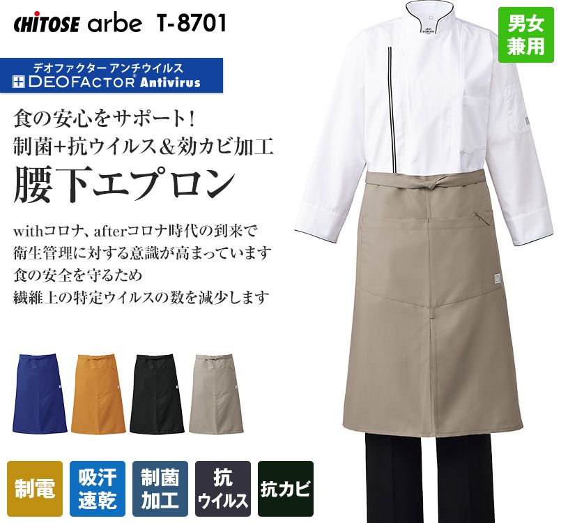 T-8701 チトセ(アルベ) 抗ウイルス加工 腰下エプロン(男女兼用)