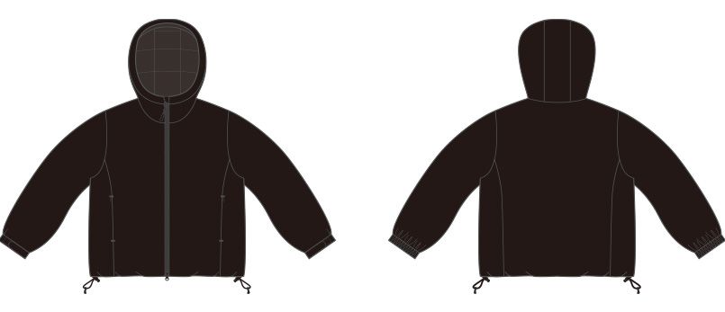 | 仕様 | YKK社製DALH型ダブルスライダー(ファスナー裏づかい)、サイドポケットはコンシールファスナー仕様、袖口はシャーリングと面ファスナー仕様、裾にはドローコード付き |