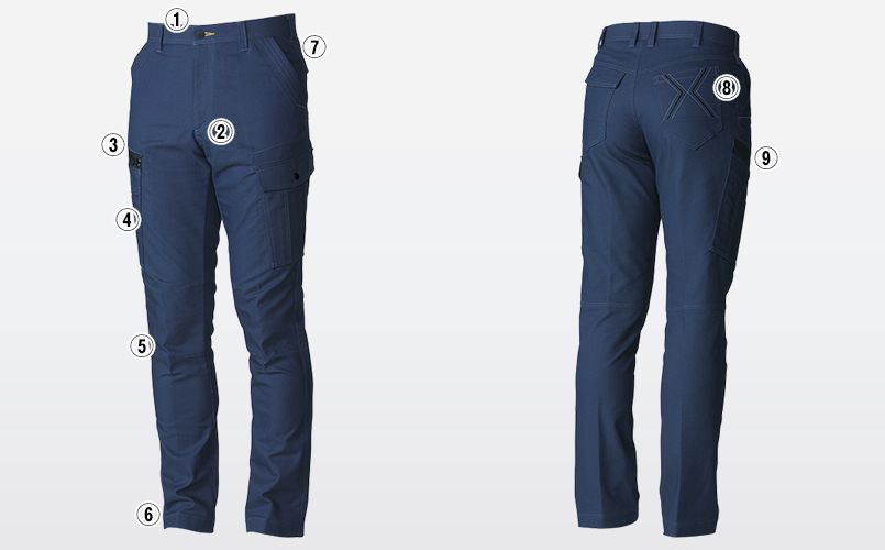 | 仕様 | 制電性素材/ストレッチ/消臭/野帳ポケット/日本製ロイヤルオックス使用/倉敷染の生地使用/タックボタン/股デオドラントテープ/カーゴ止水ファスナー/撥水袋布/ひざダーツ/裾紐通しホール(紐はついていません)/シリコンネーム/カラビナループ/反射ステッチ/カーゴペン差し/金属ファスナー/金属ボタン |