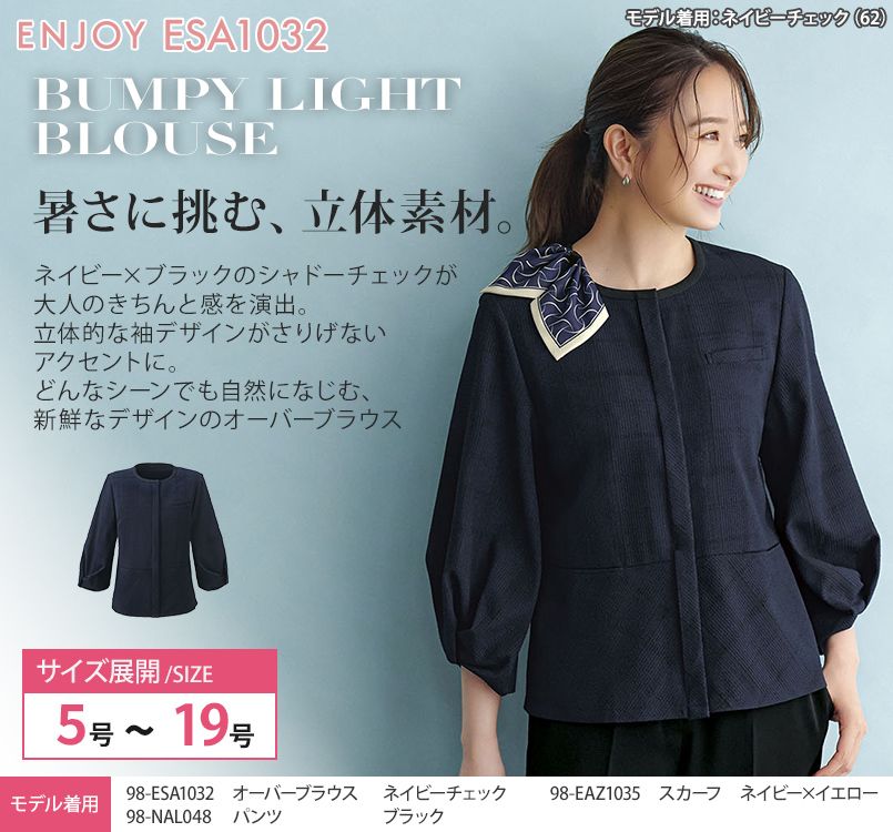 ![Enjoy ESA1032 [春夏用]オーバーブラウス(七分袖)[吸汗速乾/UVカット/2WAYストレッチ] スカーフループ®(サポートループ付)