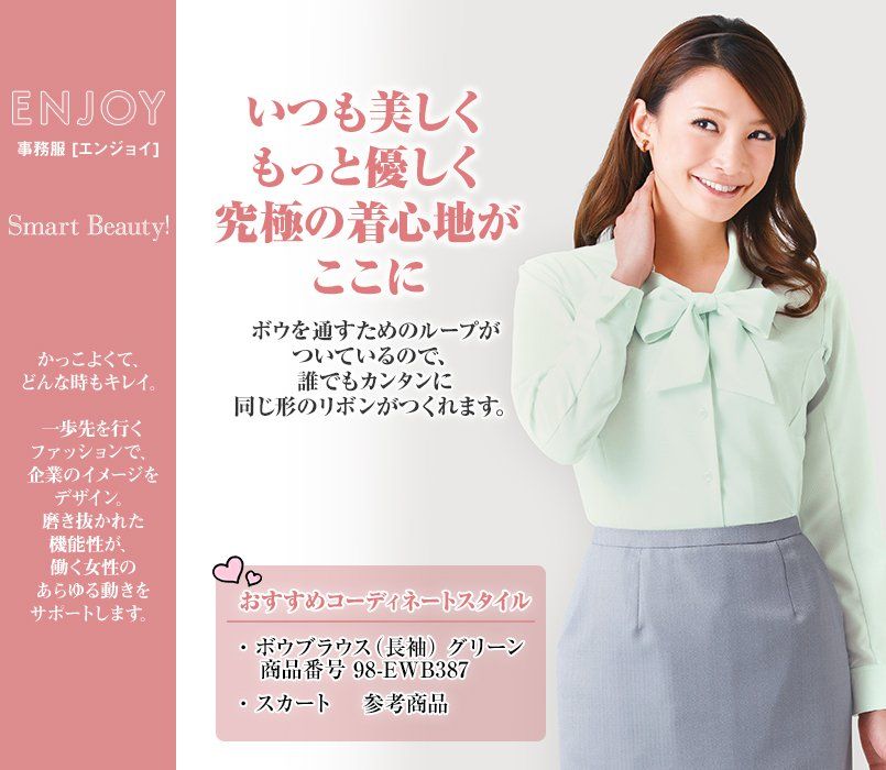[廃番]EWB387 Enjoy ストレッチ性抜群でシワも防ぐ高機能な長袖ボウブラウス