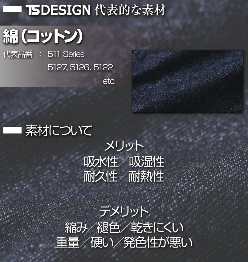 綿100%生地orストレッチデニムの2種類から選べる。オシャレなワーカーに最適なTS DESIGN。